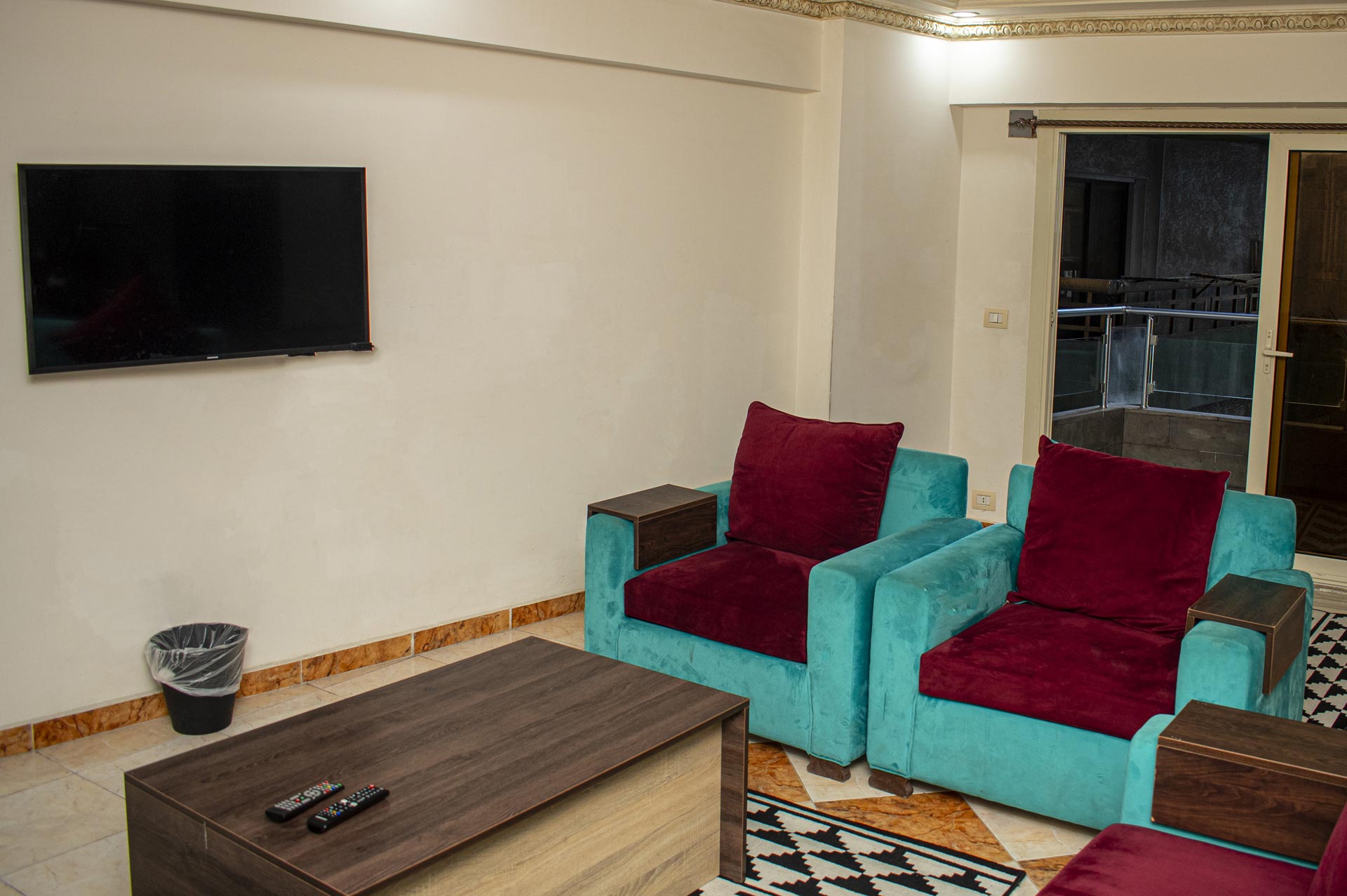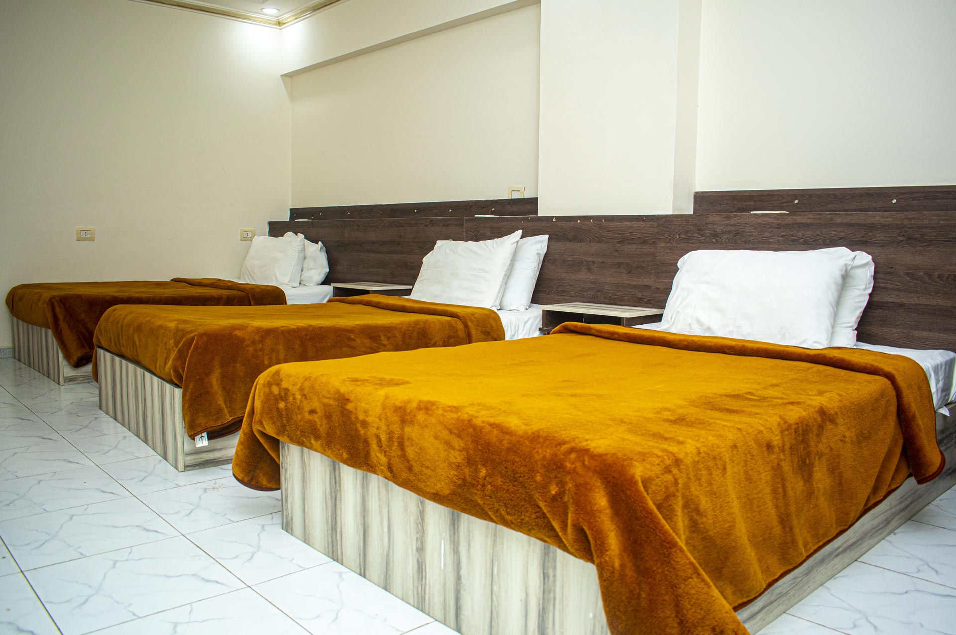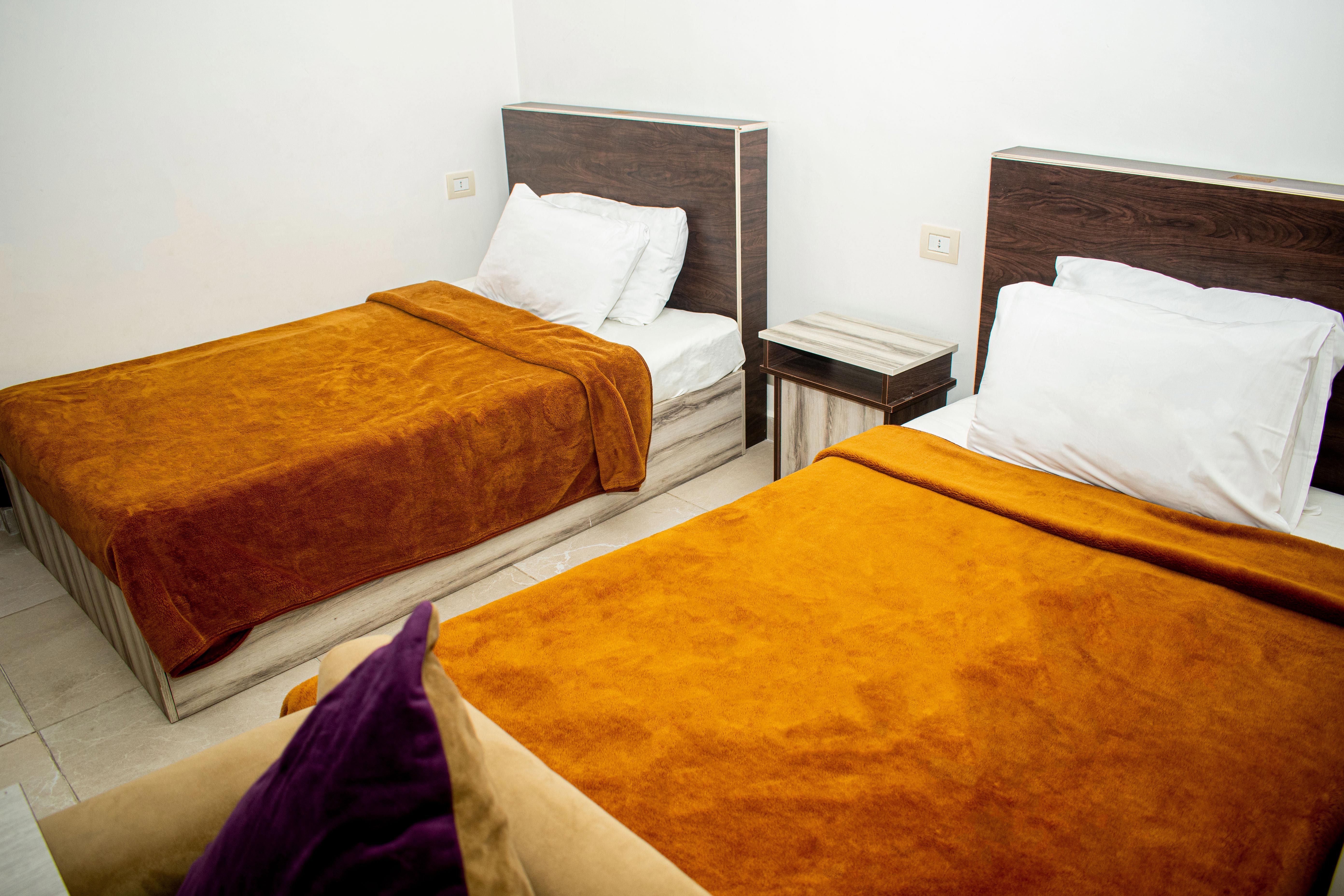 الغرفة تشمل : سرير كبير مزدوج + 2 سرير مطبخ مجهز بالكامل مع ثلاجة وغلاية تلفزيون بساشة مسطحة حمام خاص مزود ببيديت و دش غسالة