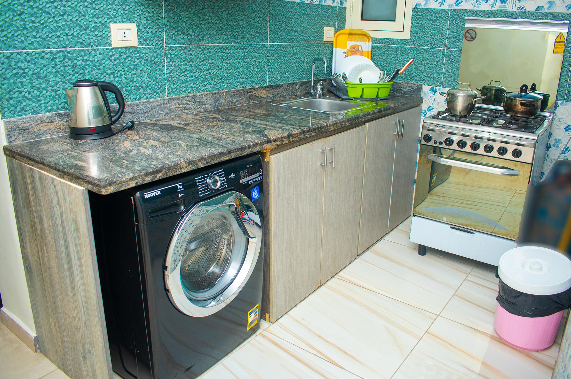 الغرفة تشمل : 3 سرير مطبخ مجهز بالكامل مع ثلاجة وغلاية تلفزيون بساشة مسطحة حمام خاص مزود ببيديت و دش غسالة