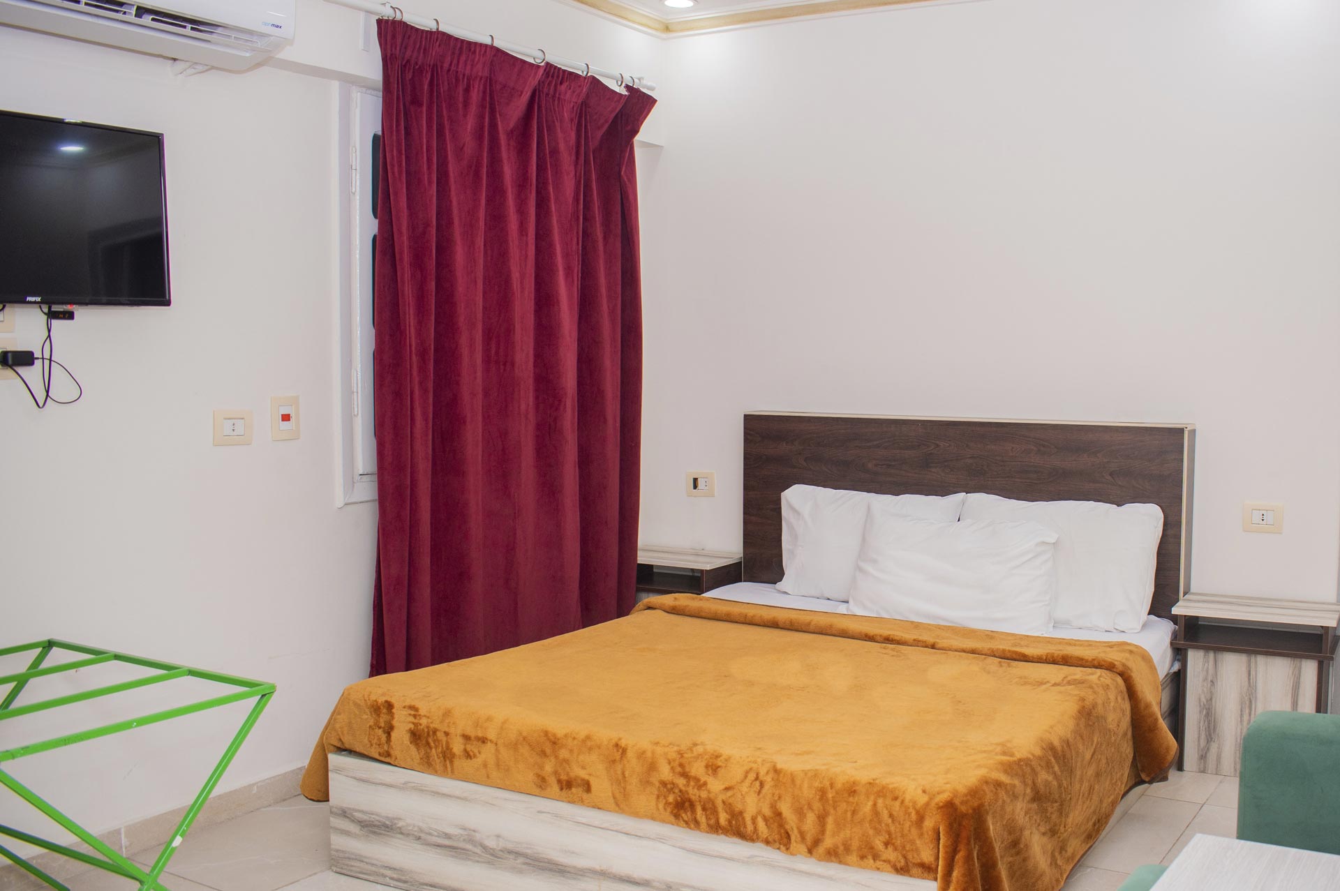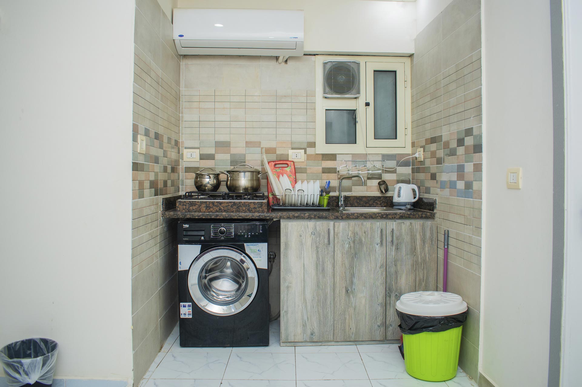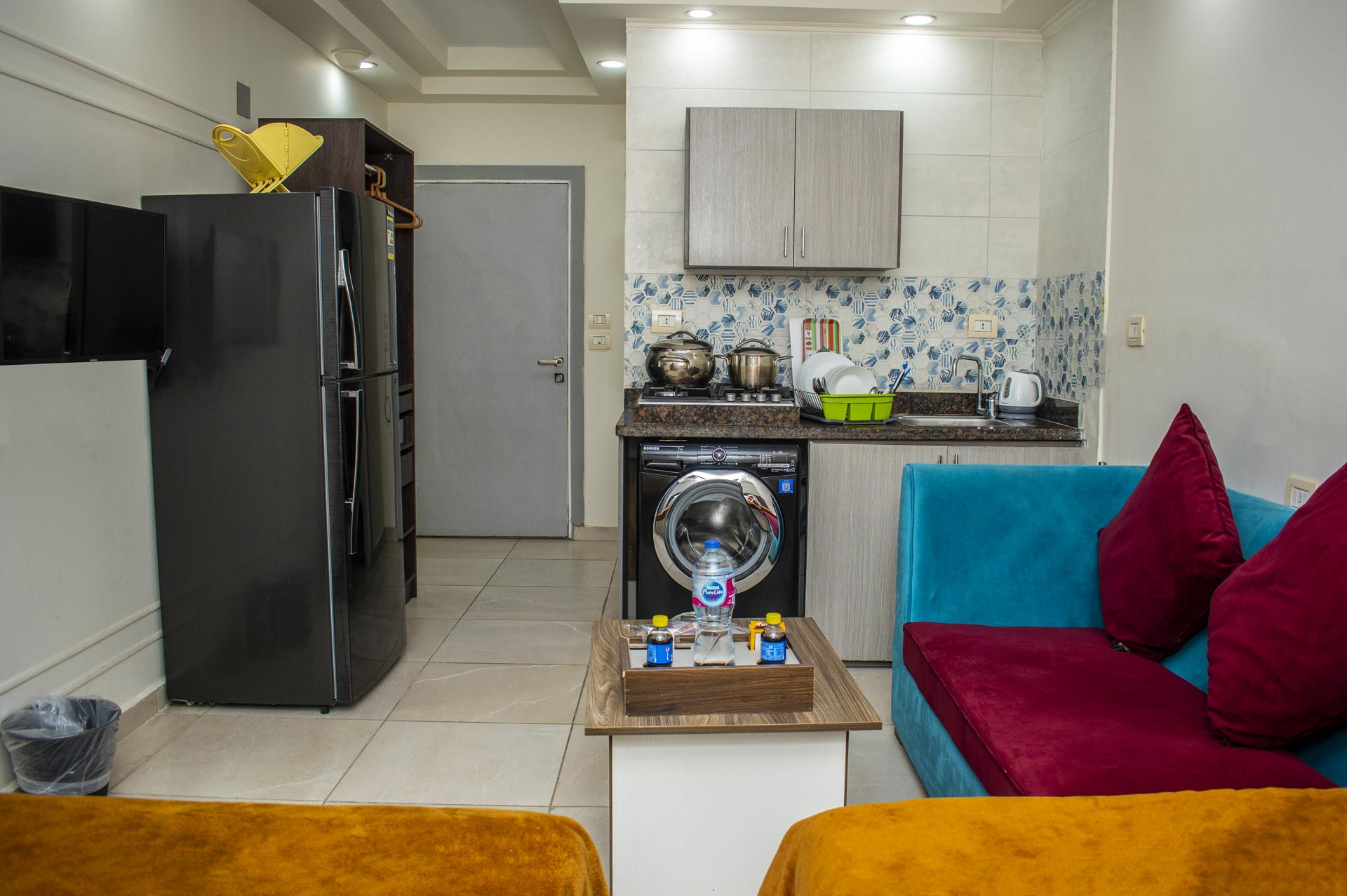 الغرفة تشمل : سرير دبل (مزدوج) مطبخ مجهز بالكامل مع ثلاجة وغلاية تلفزيون بساشة مسطحة حمام خاص مزود ببيديت و دش غسالة
