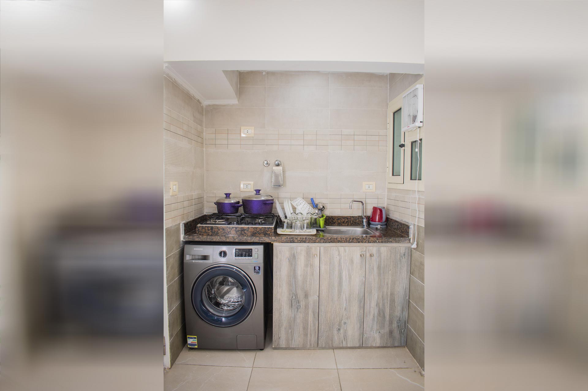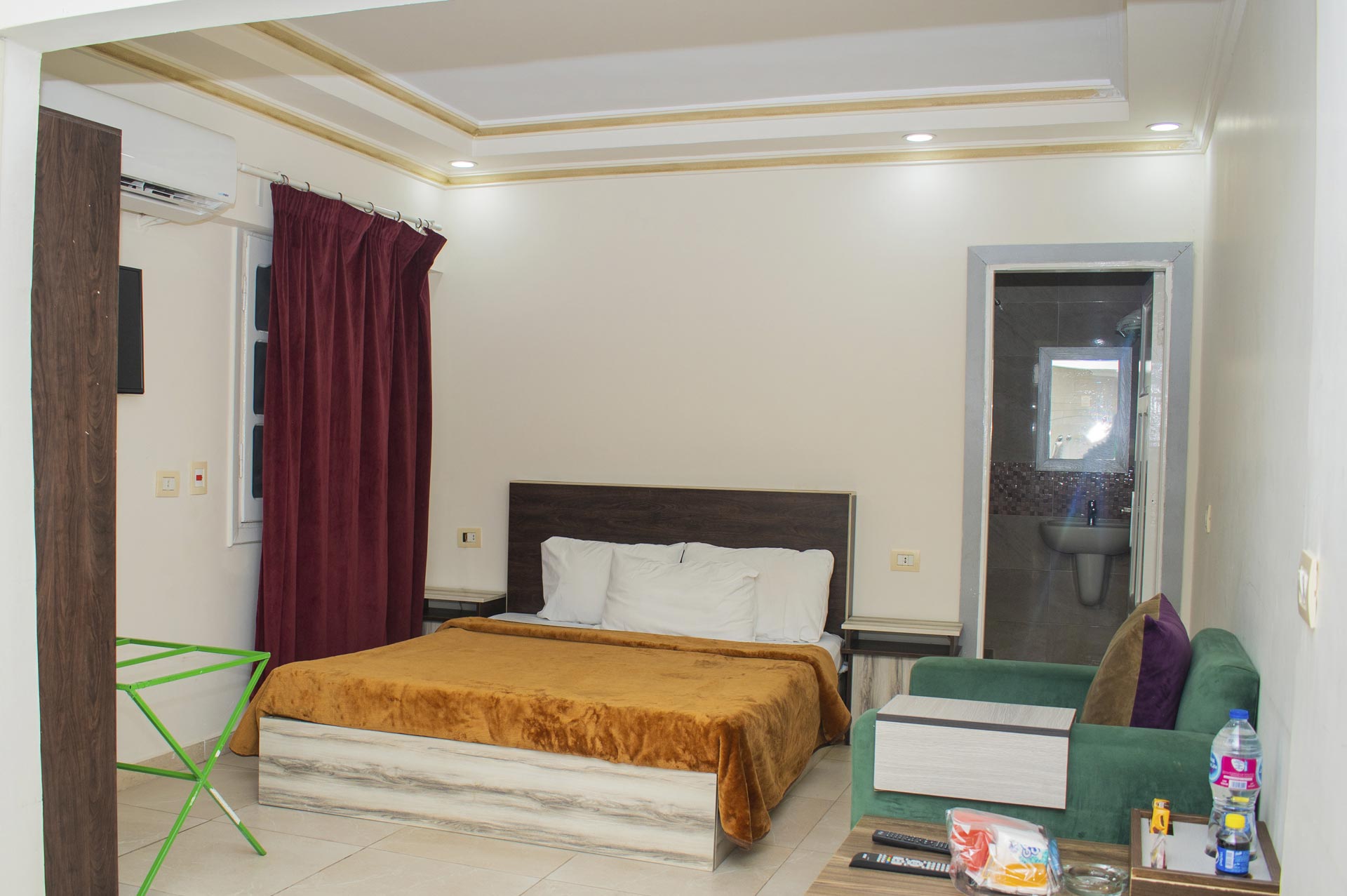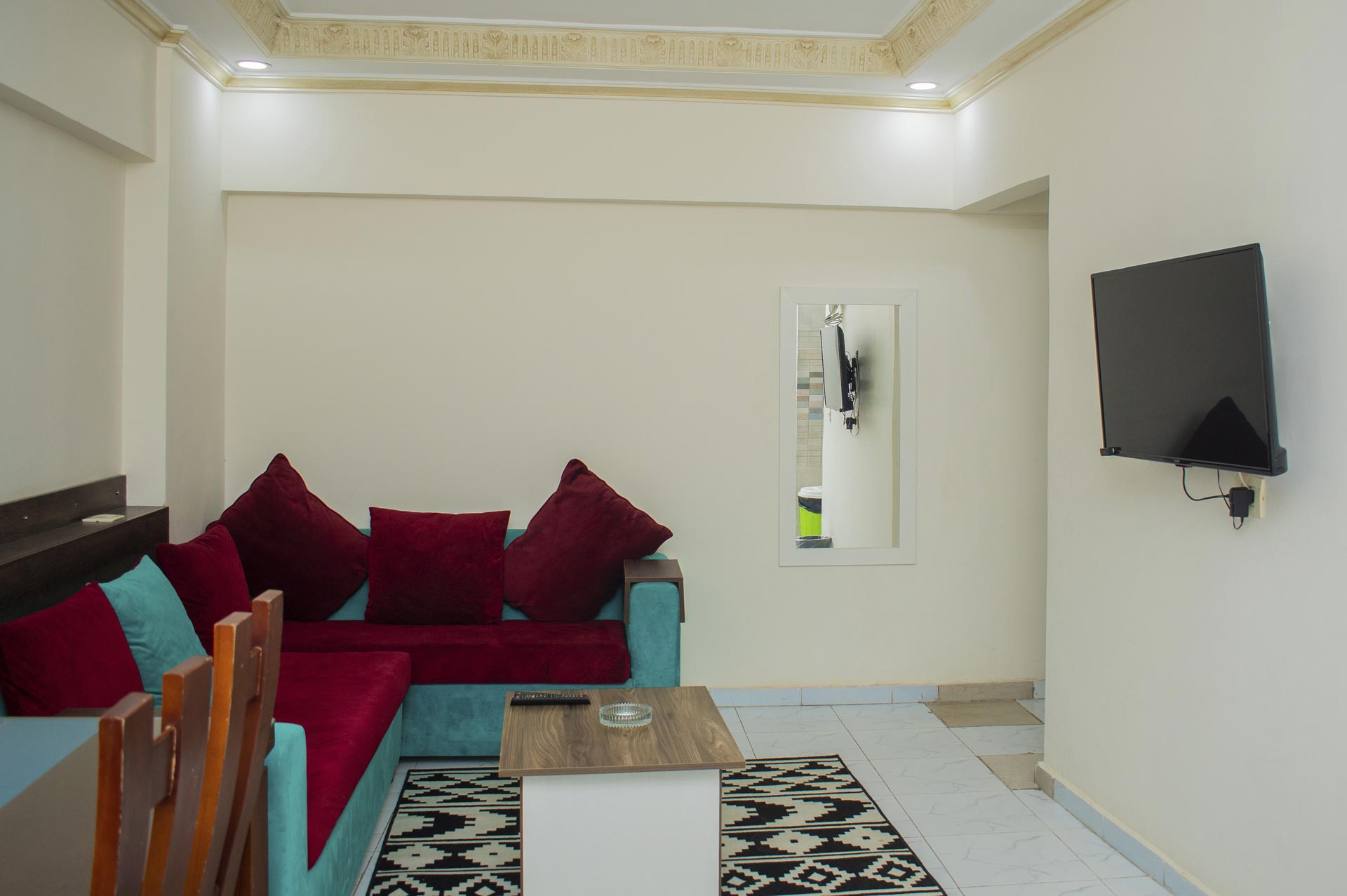 الغرفة تشمل : سرير دبل (مزدوج) مطبخ مجهز بالكامل مع ثلاجة وغلاية تلفزيون بساشة مسطحة حمام خاص مزود ببيديت و دش غسالة